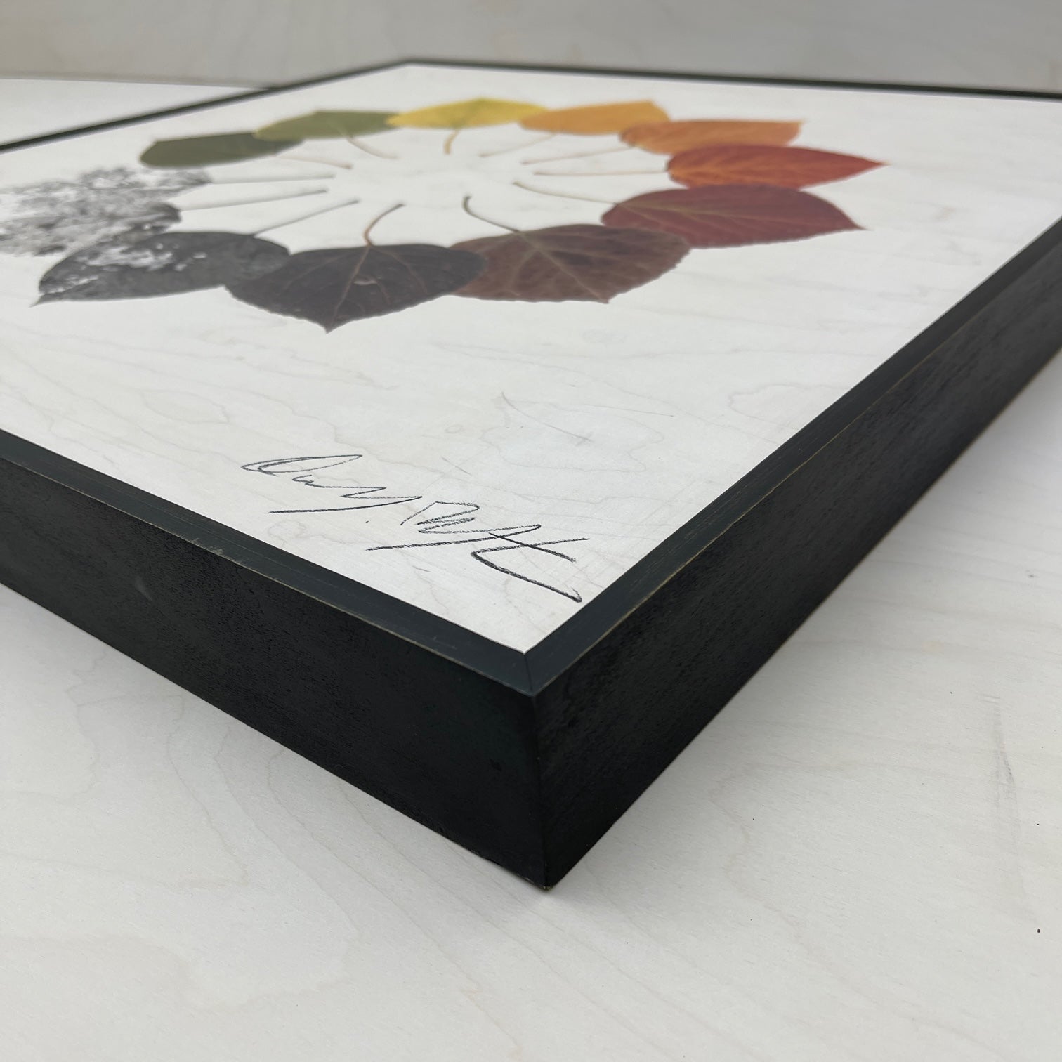 - Image printed on a white-washed maple board giving it a painterly quality