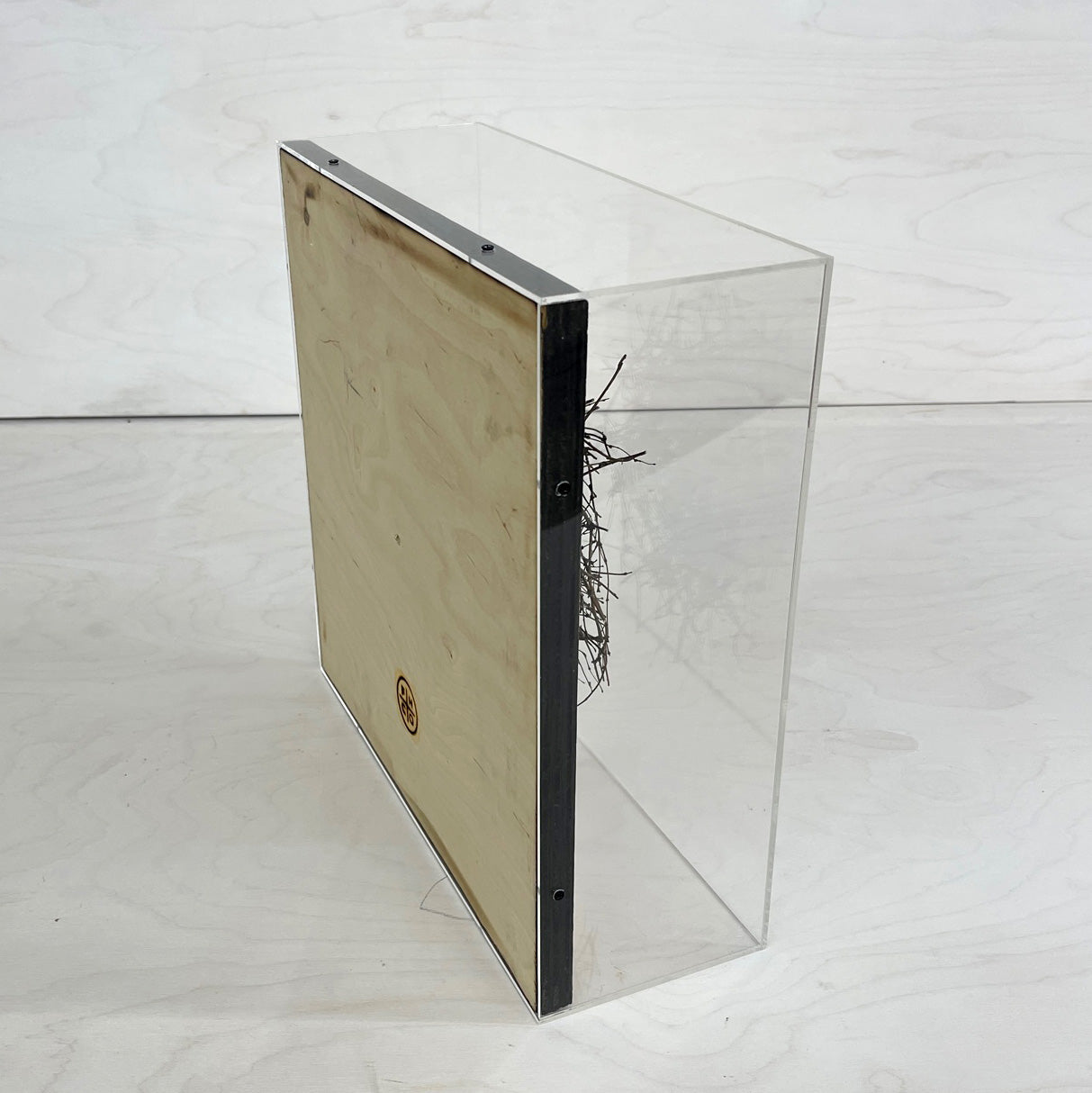 - Mounted on plywood with burnt edges and incased in plexiglass.