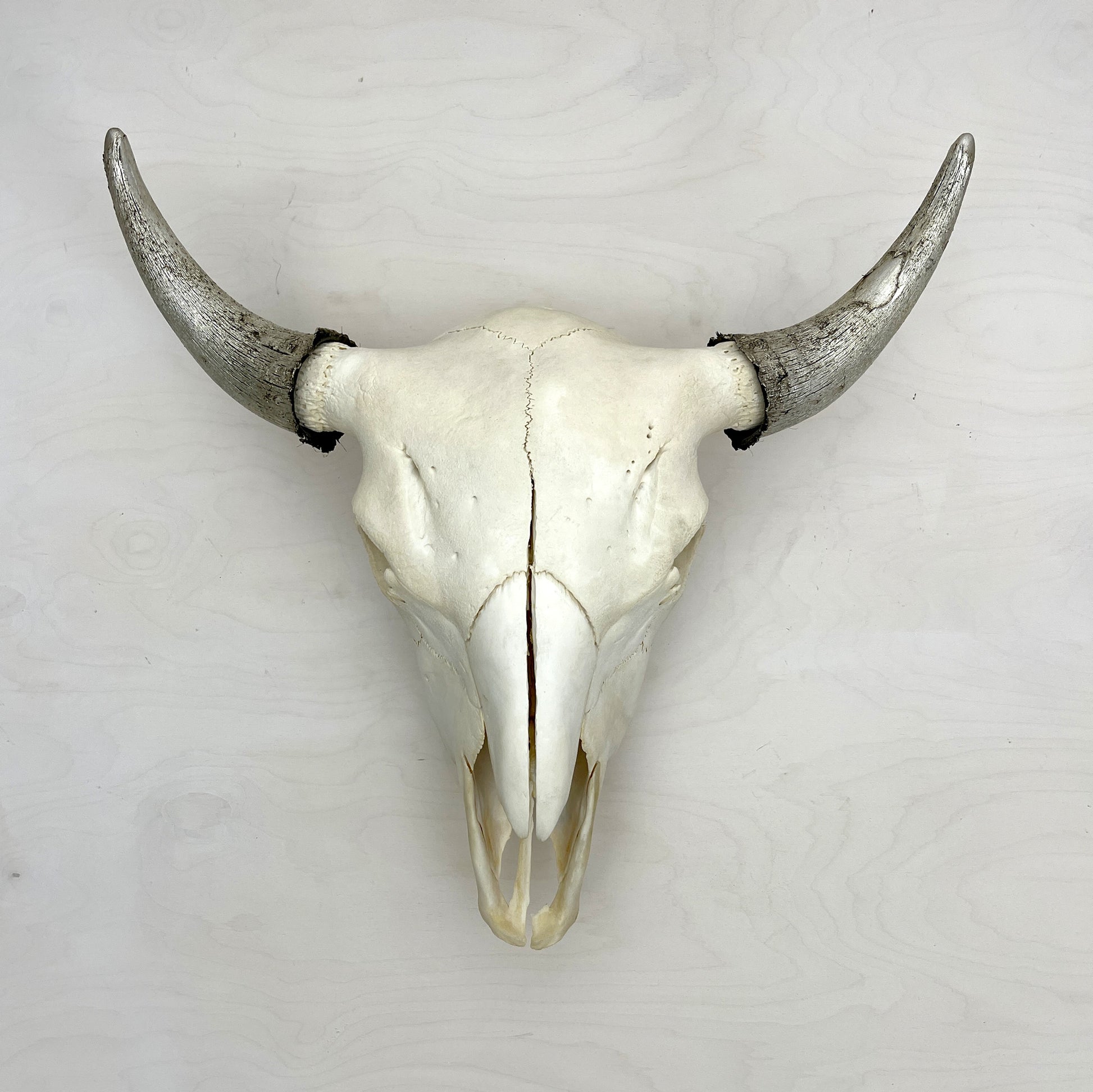 Add texture and intrigue to your wall with this icon of the West! Multiple layers of staining, gilding and sealing are applied to achieve the unique gilded patina on the horns. Our skulls come from open range bison ranches in the West.
