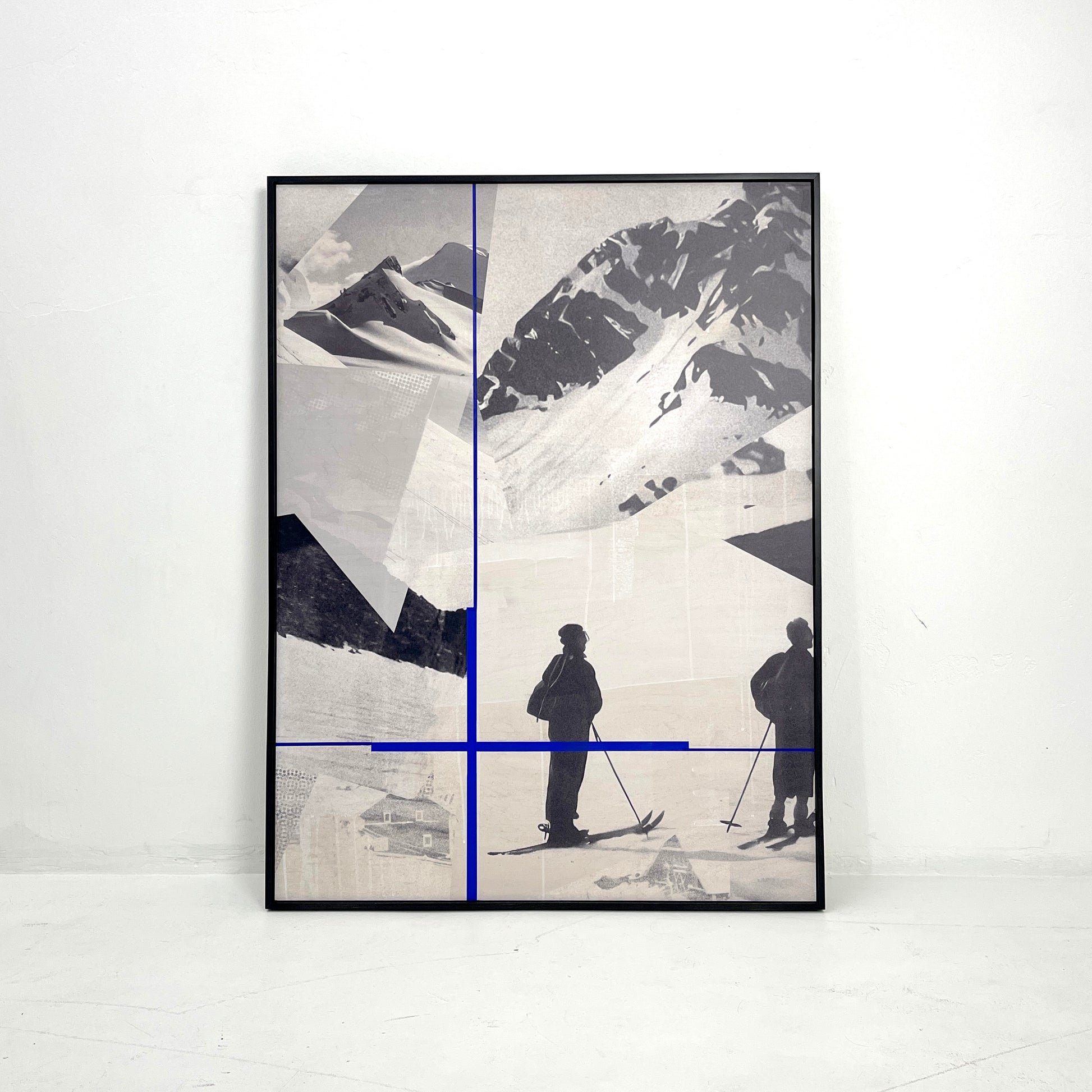 Ell Mortensen seamlessly mixes digital with analog in her unique mixed-media works. Vintage photos are digitally collaged, printed on white-washed maple panels, then thoughtfully and precisely painted with acrylic and spray paints.