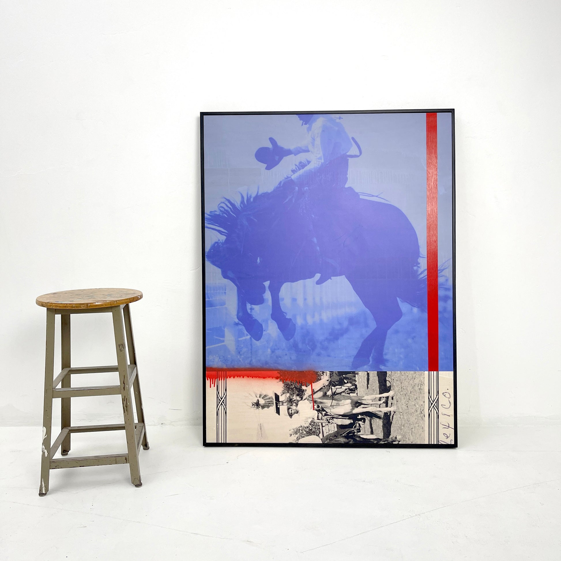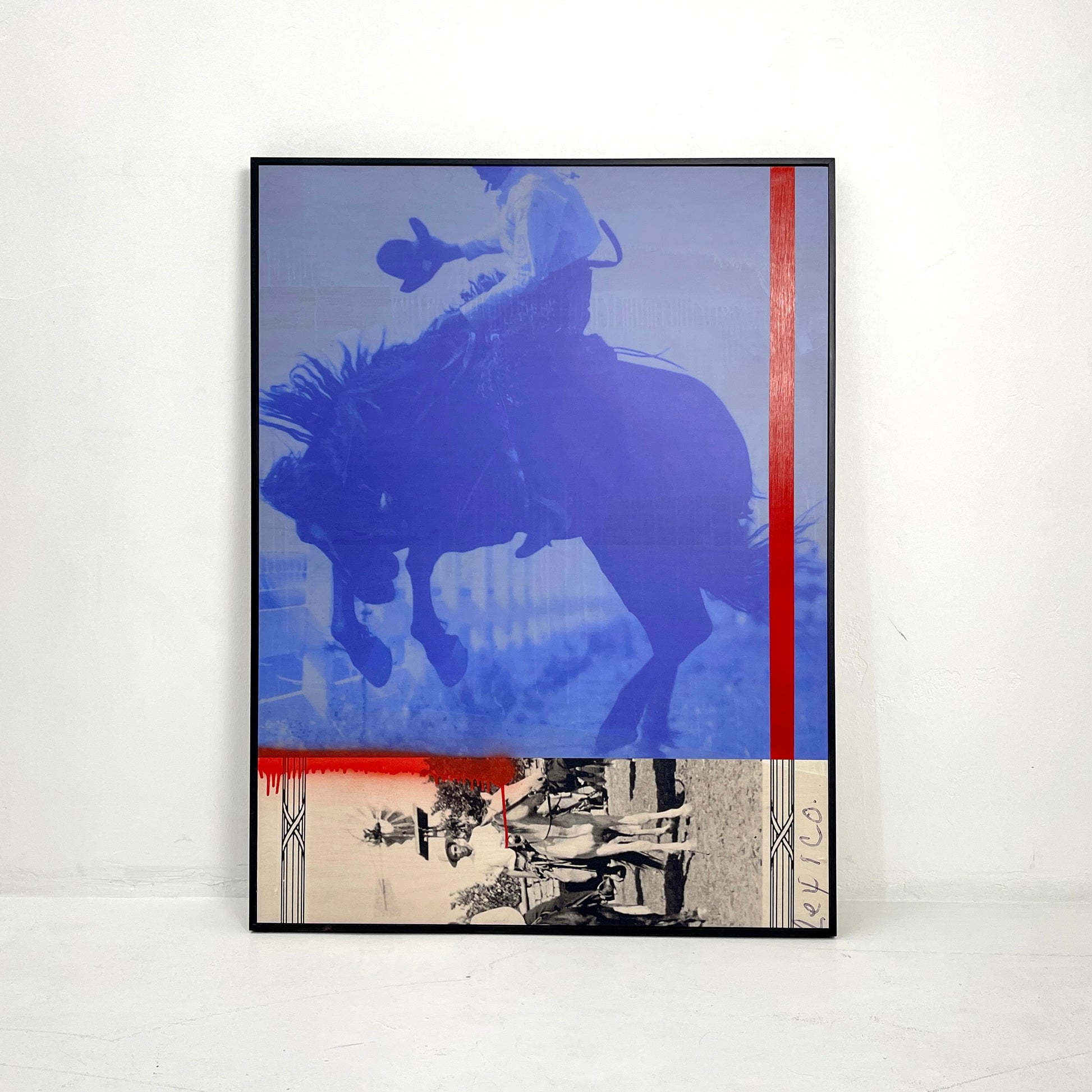 Ell Mortensen seamlessly mixes digital with analog in her unique mixed-media works. Vintage photos are digitally collaged, printed on white-washed maple panels, then thoughtfully and precisely painted with acrylic and spray paints.