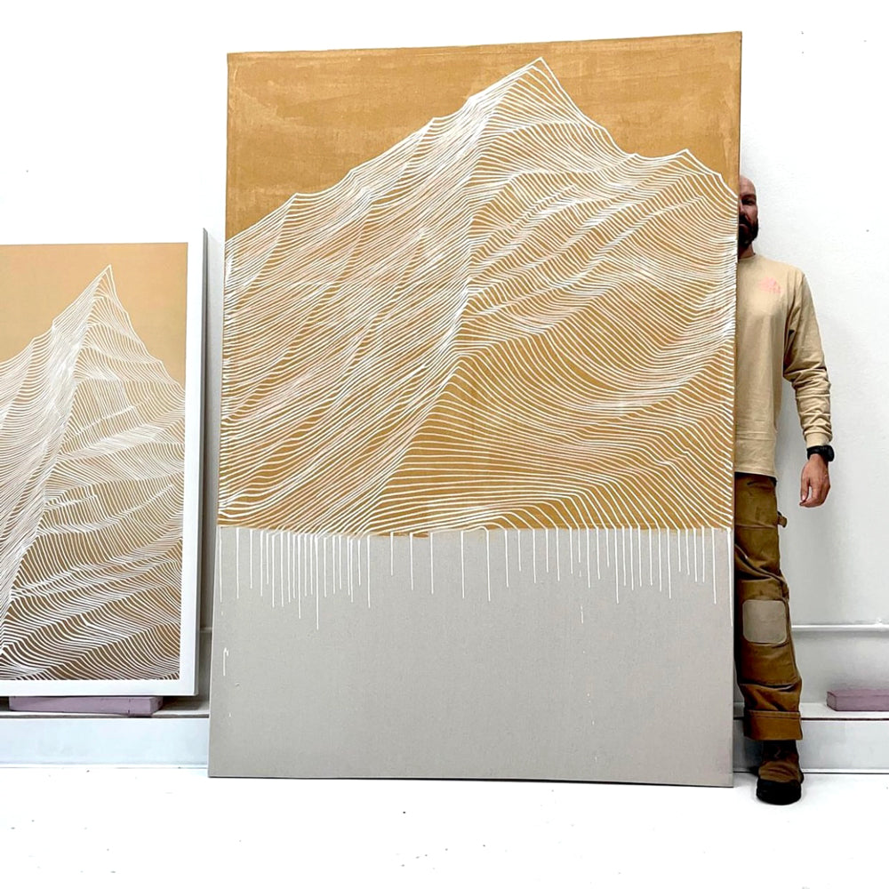 About the Artist: Working in a variety of mediums Havoc captures the essence of detailed minimalism by painting hundreds of contour lines to create minimalistic mountains. His work can be commissioned in a myriad of scales from small wall hangings to murals covering over 1000 sf. Average price per square inch: $7