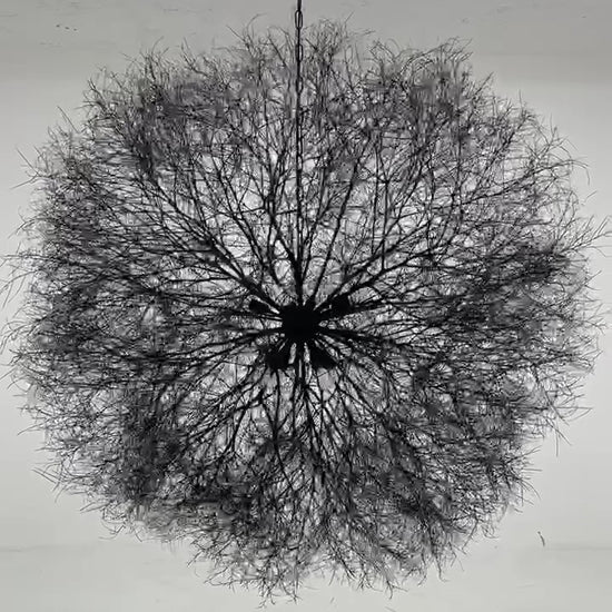 Designer and FH+CO founder, Owen Mortensen, gathers thousands of tumbleweeds along rural roads near his home in Northern Utah. After carefully sorting, cleaning and trimming each tumbleweed, he assembles over 50 "branches" to create a uniform tumbleweed sphere. The result is a natural, modern light sculpture.
