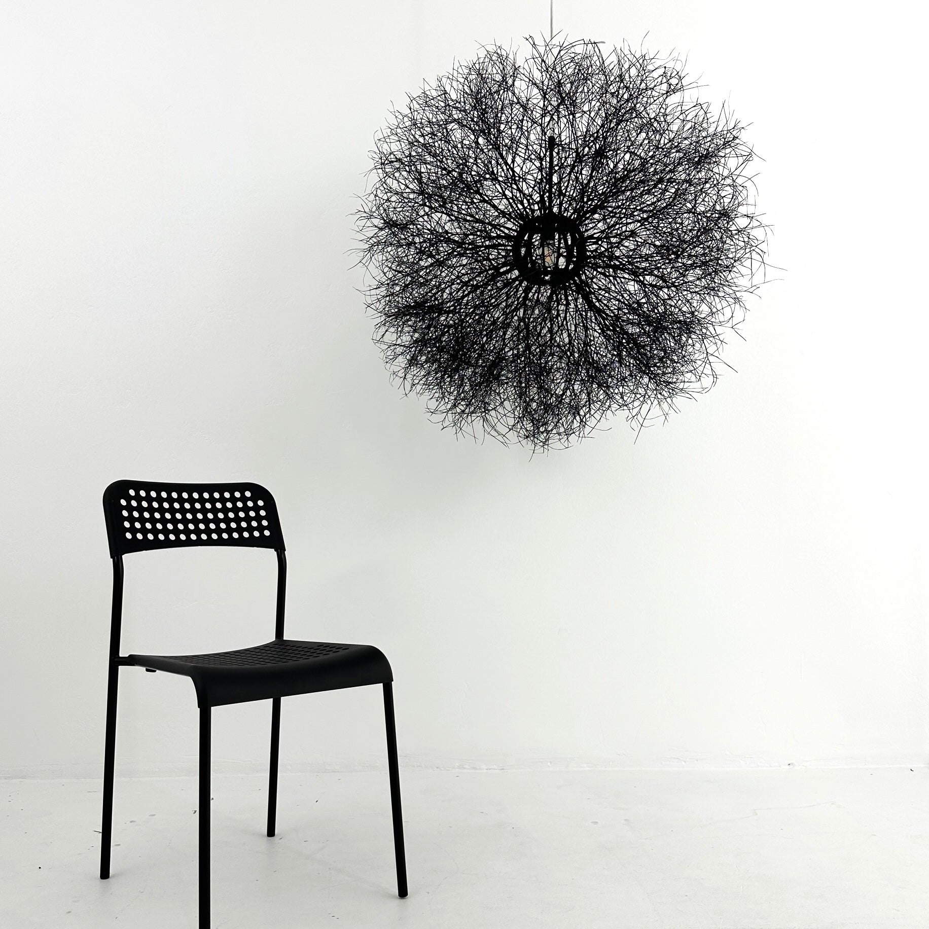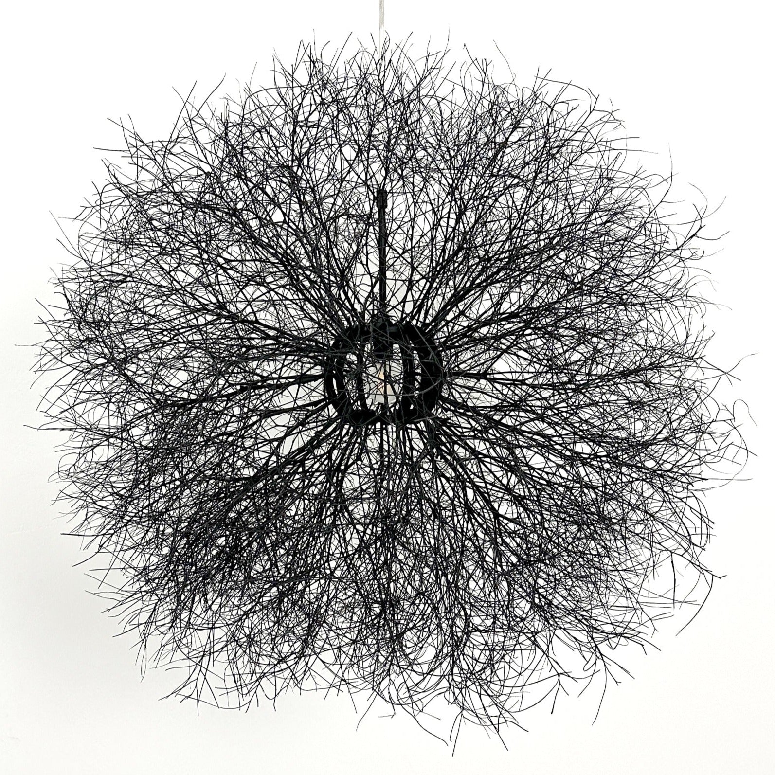 Designer and FH+CO founder, Owen Mortensen, gathers thousands of tumbleweeds along rural roads near his home in Northern Utah. After carefully sorting, cleaning and trimming each tumbleweed, he assembles over 50 "branches" to create a uniform tumbleweed sphere. The result is a modern light sculpture.