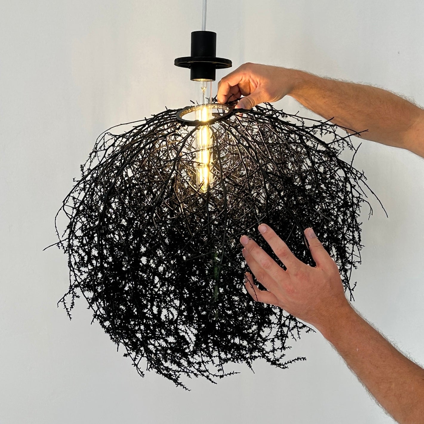 Synonymous with the American West, these tumbleweeds ain't tumbling no more. Instead, they've been carefully selected and treated to provide your room with organic texture and beautiful filtered light.